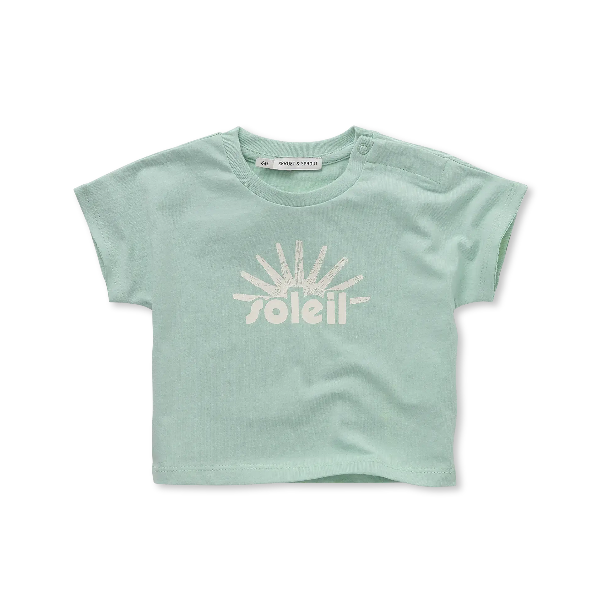 ¡Aquí viene el sol! La camiseta soleil verde menta brilla con luz y alegría. Elaborado con algodón 100% orgánico, manteniendo a los pequeños aventureros ligeros y cómodos todo el día. La camiseta cuenta con botones en el lateral derecho para una mayor facilidad.