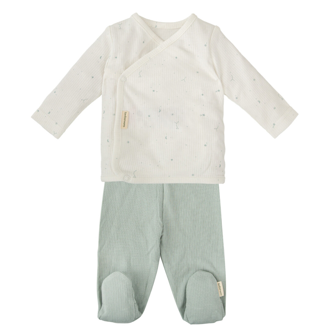 El Set de Jubón y Polaina Orion de Bimbidreams es la opción perfecta para la delicada piel de tu bebé. Fabricado en 100% algodón, es suave, transpirable y cómodo, ideal tanto para los primeros días en el hospital como para regalar.