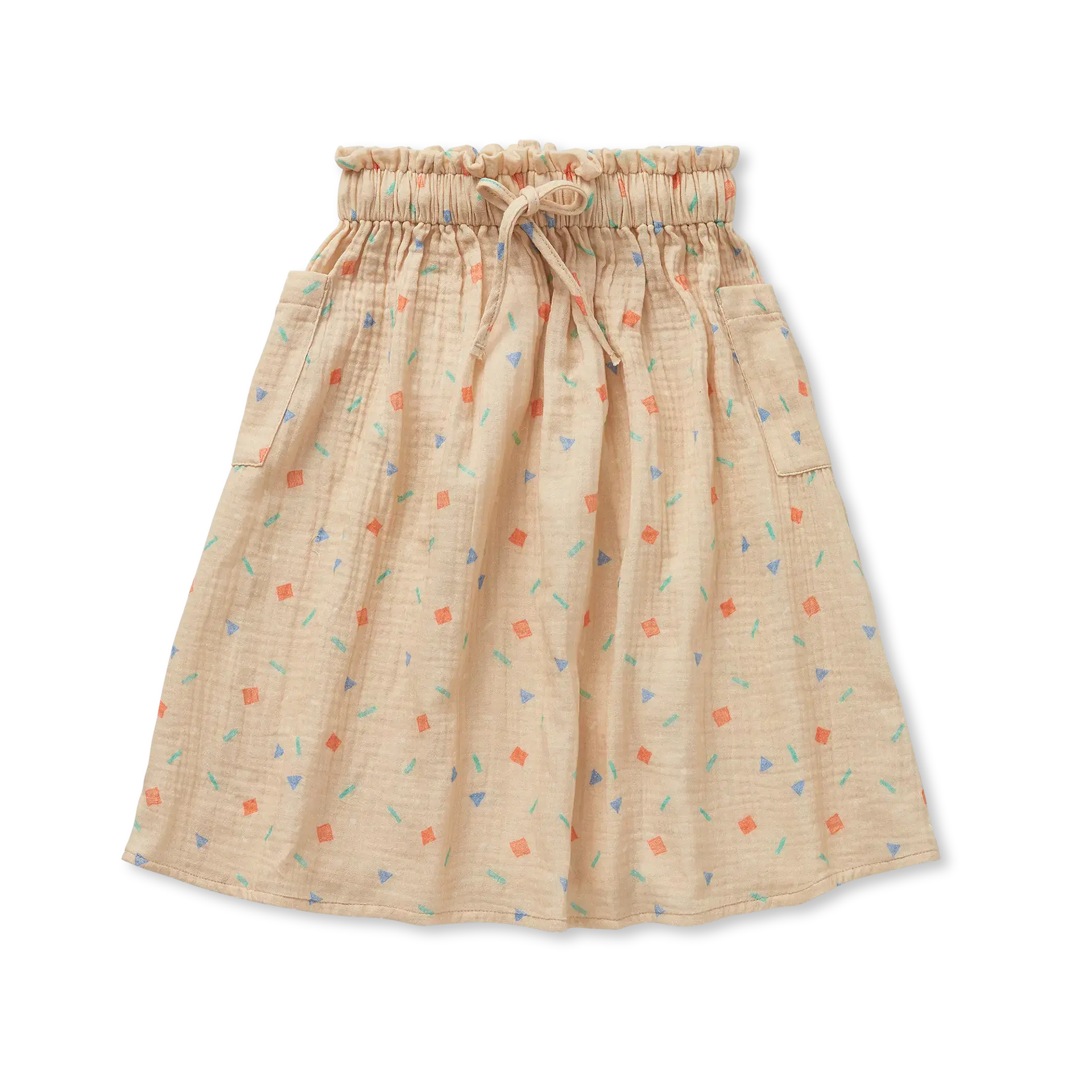Enamórate por el verano con esta falda de muselina color sésamo. Ligera, aireada y decorada con chispas geométricas juguetonas, está diseñado para correr, saltar y girar con facilidad.