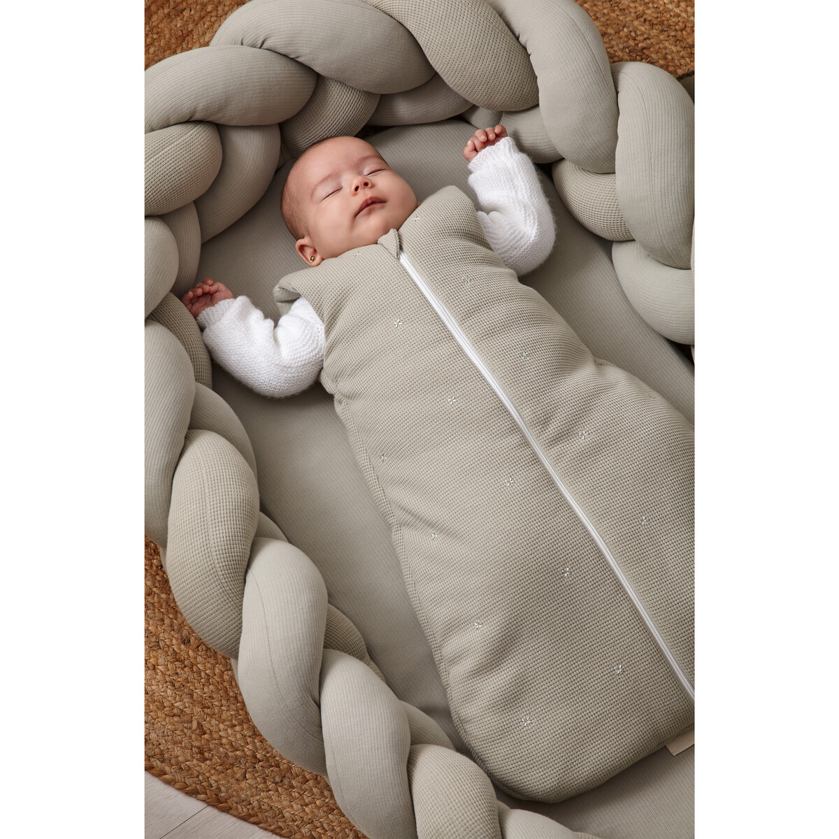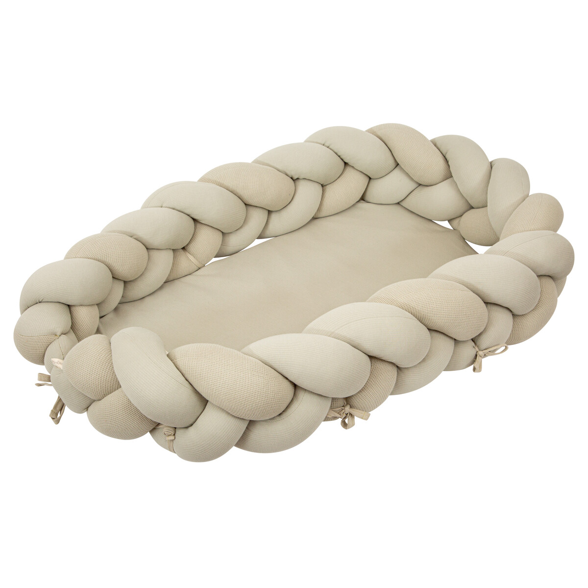 Tipo de producto: Cuna cojín nido desenfundable. Cuenta con aperturas para poder separar el textil del colchón mullido y un cordoncito para poder ajustar la cuna nido en función del tamaño y crecimiento de nuestro bebé. El interior de la base y el rulo son muy mullidos proporcionando protección y confort.