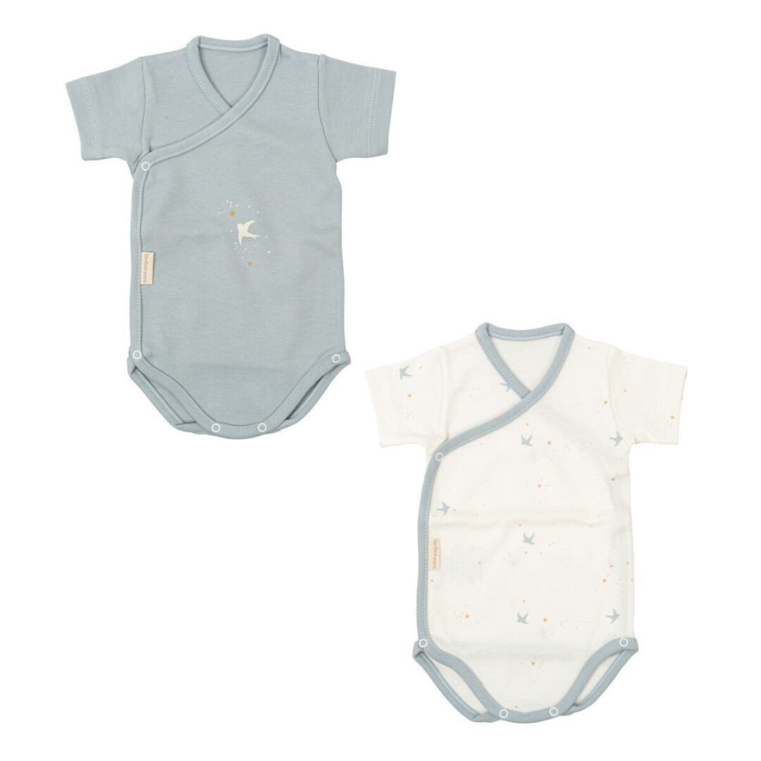 Bodys de manga corta para recién nacido en textil algodón con bambú. Incluye dos vistas diferentes a juego.