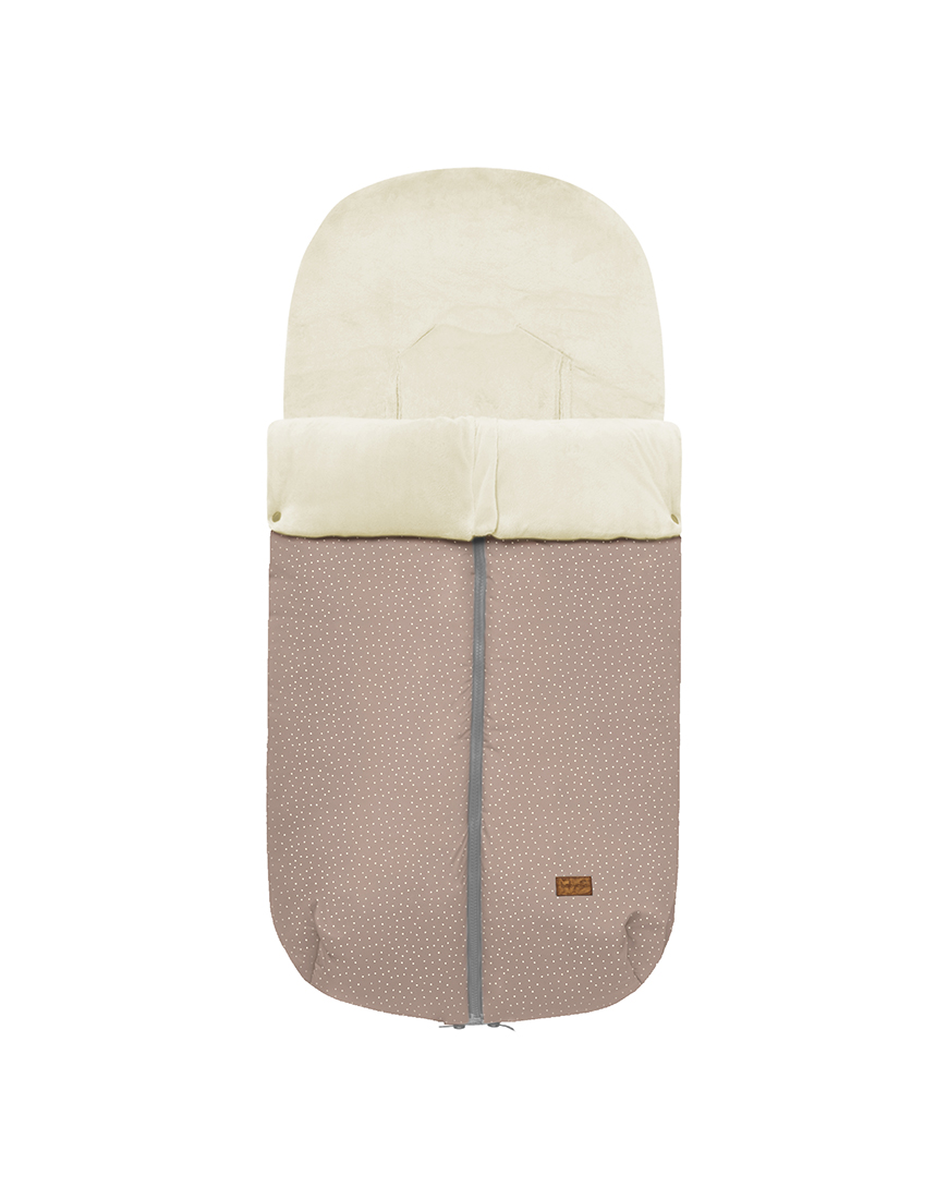 Cremallera en la tapa y alrededor del saco, con doble carro, que permite la posibilidad de sacar los pies.