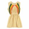 Pantalón corto de felpa de algodón flamé con cintura elástica. Detalle con dobladillo sin rematar y estampado de rayas laterales multicolor.