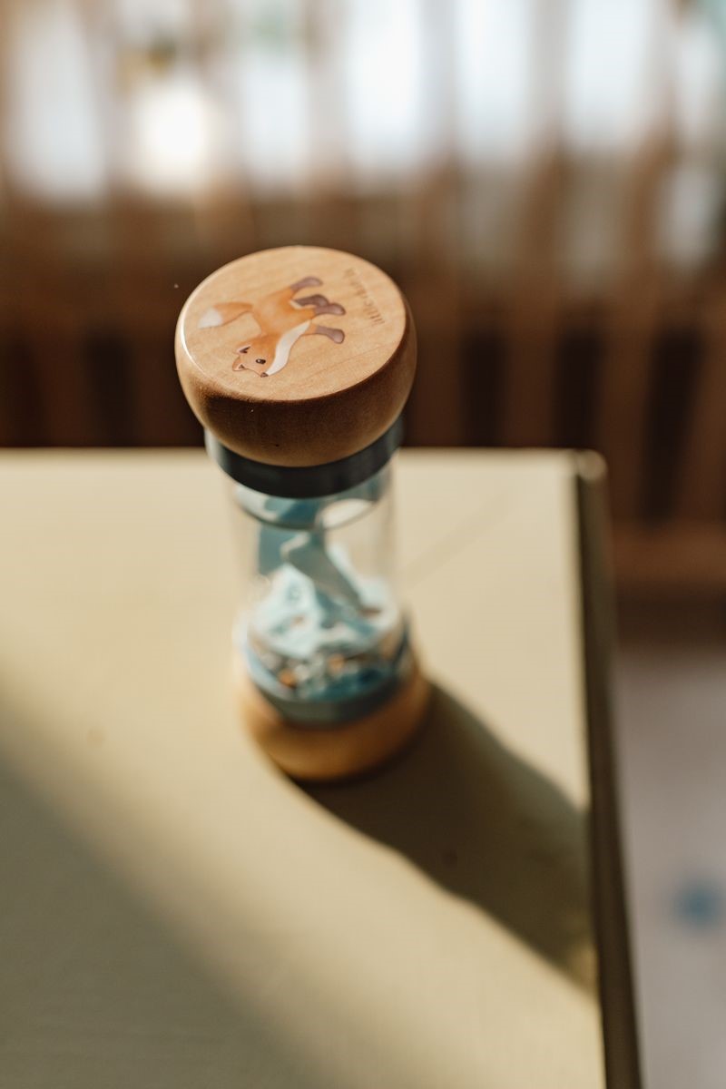¡Agítalo y haz sonar! Gira el sonajero de lluvia y escucha el sonido relajante de las bolas que se mueven de un lado a otro del generador de lluvia. Estimula el desarrollo sensorial y el talento musical de tu bebé. Las bolas caen a través de pequeñas aberturas en el tubo y hacen girar la hélice, lo que produce un sonido agradable. El sonajero de lluvia está diseñado para manos pequeñas y es cómodo de sostener. La parte superior e inferior de madera están decoradas con una ilustración de un pequeño zorro y un par de hongos de la colección Forest Friends.